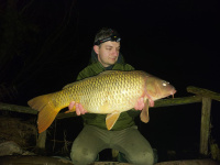 Dalším úkolem bylo rozhýbat i ostatní pruty. To se nám povedlo až s další menší změnou. Místo 14mm pelety jsem nastražil 20mm boilies v dipu s trochou těsta. Jahodu jsem ponechal, ale místo craba jsem dal šanci squid mintu. To se ukázalo jako další dobrý tah a na oba pruty dostáváme pravidelné záběry. A to i z velké hloubky. Jednalo se o ryby kolem 10-14kg. Ze čtvrtka na pátek byla nejproduktivnější noc. Mimo kapry jsem zdolal i jednoho kočičáka:) Zajímavostí bylo, že se nám sice rozjeli i další místa, ale úplně utichlo to první, které dávalo nejvíce ryb. I tak jsem stále věřil, že by právě z tohoto místa mohla ještě přijít nějaká pořádná kobylka. Schválně jsem tento prut vůbec nepřehazoval, nechal jsem to tam co nejdéle to šlo. Vyplatilo se. V pátek na večer dostáváme opět pomalejší jízdu a na konci máme 17,5kg těžkého šupíka, který neodolal chilly fishce.
